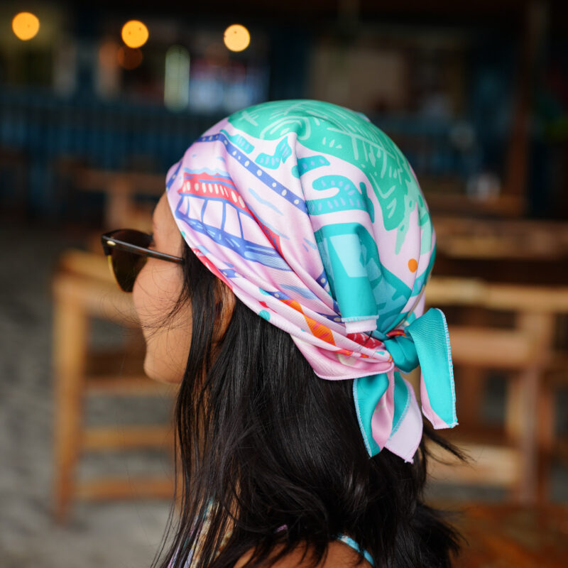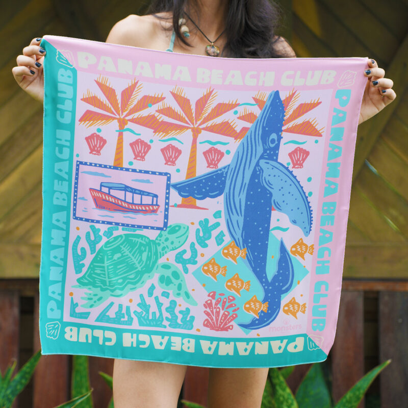 Pañoleta hecha a mano con diseño original de nuestra marca Monsters y el ilustrador Rako.